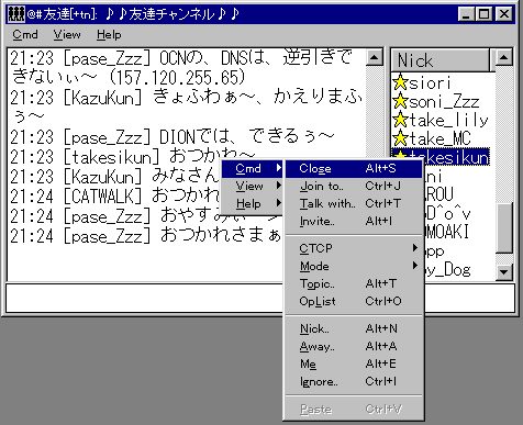 | Close | そのチャンネルをpart(退出)します |