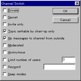 | Topic settable by chan-op only | チャンネルのtopicを☆(ナルト)をもっていないと変更できなくします |